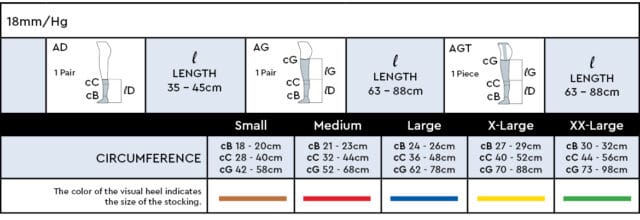 Μεγεθολόγιο - Αντιθρομβωτική Κάλτσα Ριζομηρίου Λευκή 18–20mmHg